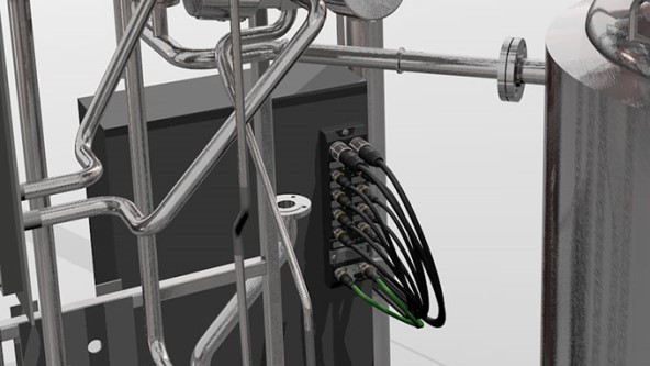 En áreas peligrosas (Clase 1, División2), el módulo E/S se instala en las inmediaciones de los fermentadores. Allí controla las conexiones de las válvulas Gemü. En vista de las breves ventanas de tiempo para la implementación de proyectos farmacéuticos, los tipos de protección del módulo multiprotocolo Ethernet son ventajosos. Gracias aIP67 e IP67K, la instalación en el armario de control ya no es necesaria, mientras que el cableado con cables preensamblados ahorra mucho tiempo.