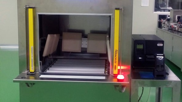 Para hacer esto, el empaquetador simplemente coloca la caja en la entrada de la máquina y la operación de lectura comienza automáticamente, 10 antenas RFID detectan todos los tags de la caja, una antena se mueve dentro de la máquina para evitar que haya lecturas duplicadas o paquetes sin leer. Siguiendo con la etapa de identificación, la máquina inicia la impresión de la etiqueta del número de serie en la cual se coloca por fuera de la caja para identificar el envío posterior.