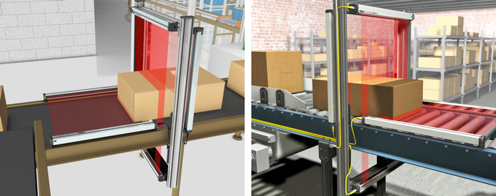 Estas características permiten una buena detección y medida de los paquetes que pasan a través de las barreras. El número total de haces bloqueados indicará el tamaño de la caja, y este valor se enviará directamente al PLC mediante una señal analógica o a un maestro IOL mediante comunicación IO-Link.