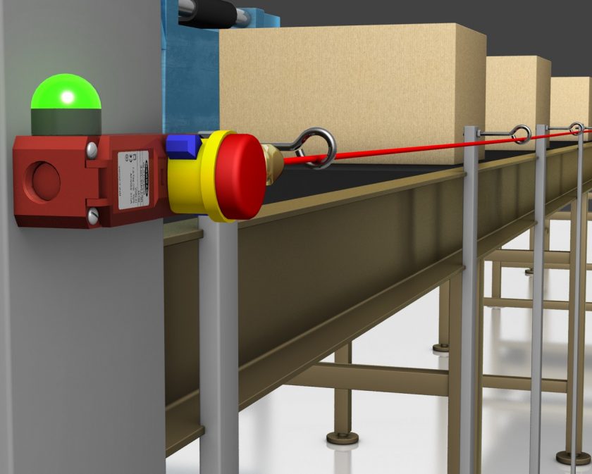 La cuerda de seguridad tira de los transportadores de línea como una forma de indicar emergencias y apagar inmediatamente los transportadores. Si se usa un tirón de cuerda durante una emergencia, puede ser difícil ubicar exactamente dónde se tiró.