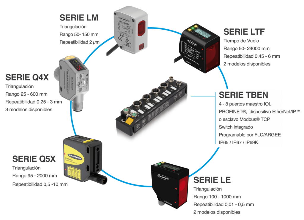 Productos utilizados: Sensor láser de medición de Banner y Bus de Campo de Turck