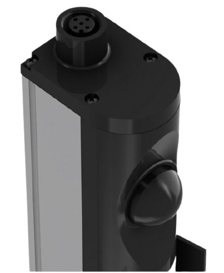 - Conector M12 integral de 4 pines y capacidad para conectar en cadena la alimentación.