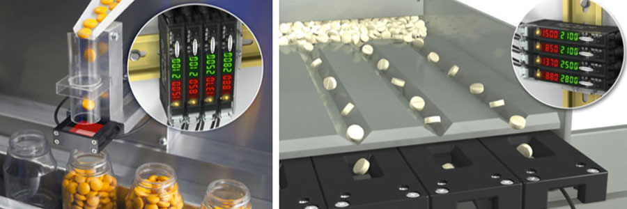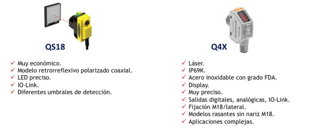 Soluciones con sensores de contraste y sensores RGB altamente precisos para poder adaptarse a producciones con objetos de diferentes tonalidades. Soluciones: