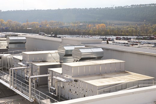 La ventilación debía ser completamente renovada en uno de los edificios más grandes de la fábrica. Se necesitaban unos caudales de aire más elevados y el espacio disponible para la instalación de los equipos era insuficiente, por lo que fue preciso instalar las AHU sobre el tejado. Las grandes unidades de 80.000m3/h se colocaron sobre una plataforma de acero en la conexión entre 2 edificios. Otros requisito clave, junto al ahorro energético, fueron el menor tamaño de la unidad, un peso inferior y la reducción del ruido.