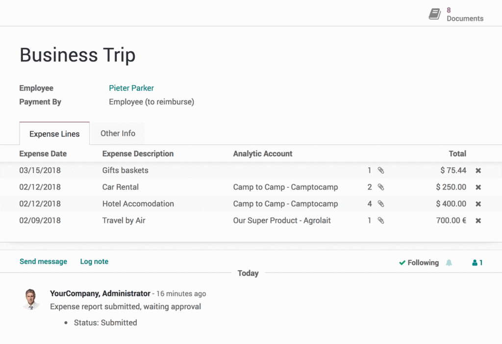 Solicite una demo gratuita para comprobar las funciones de Gastos de Odoo