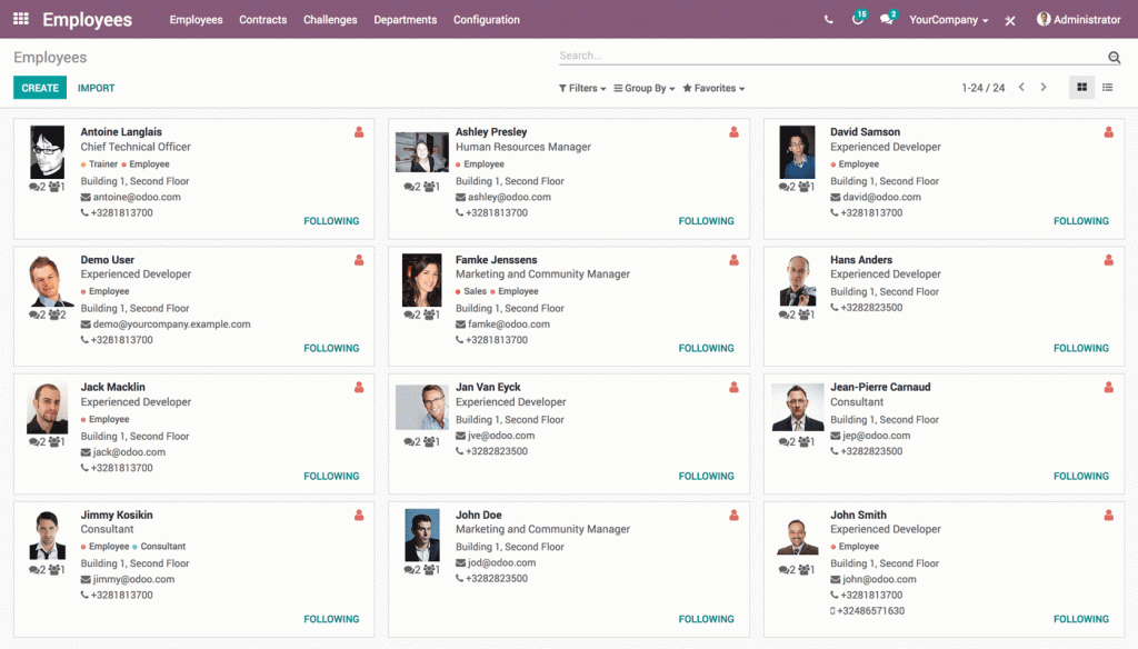 El módulo de Recursos Humanos de Odoo te ayudará a tener el control sobre tus empleados y vehículos.