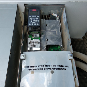 Esta instalación contaba con la peculiaridad de disponer de los variadores montados en horizontal en el interior del cuadro de la máquina, debido a las limitaciones de espacio. El modelo FC103 de 160kW IP20 montado dispone de unas dimensiones muy reducidas considerando su potencia, por lo que es ideal para aplicaciones de refrigeración y HVAC con limitaciones de espacio como este caso.